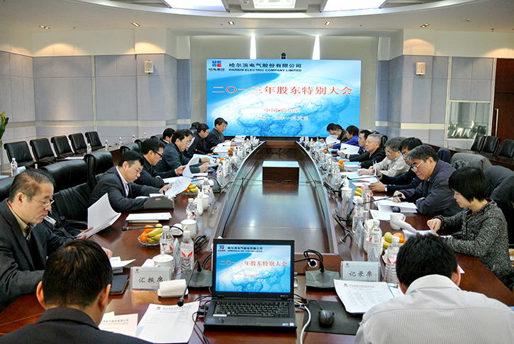 2013年1月5日9時(shí),哈爾濱電氣股份有限公司在本部大樓17樓1號會議室召開2013年股東特別大會,審議通過了第七屆董事會及監(jiān)事會成員。